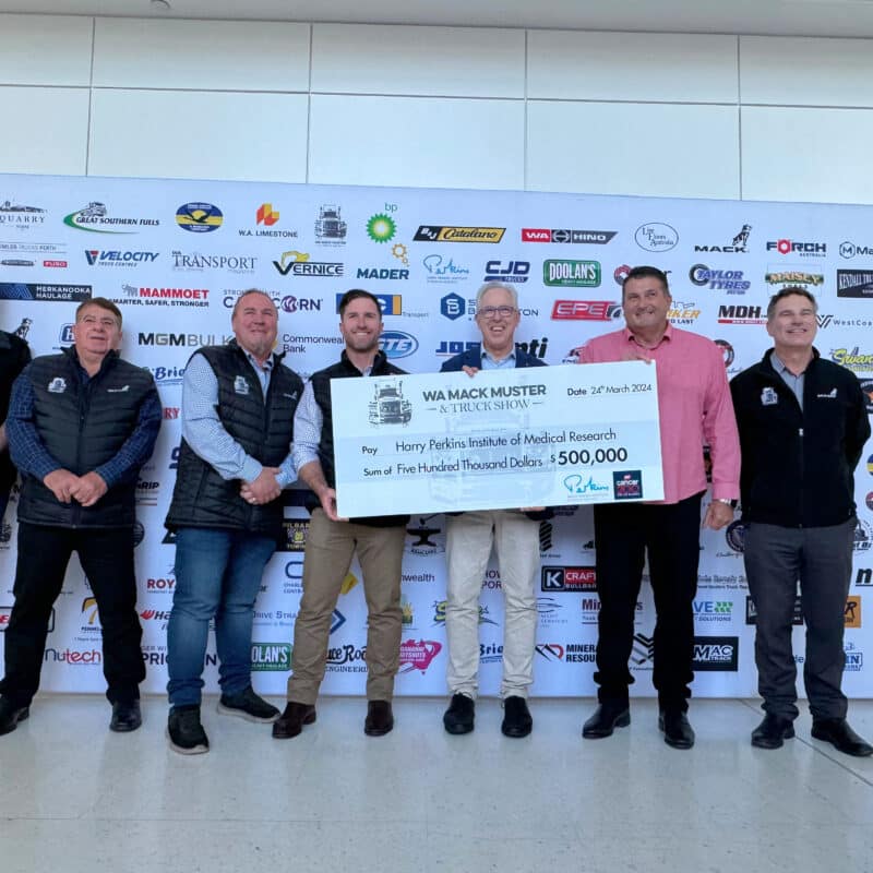 By Alicia Bienkowski | Cancer, Community Events, Events, Media Releases, News & Events, Perkins Events, SupportersPictured above, L to R: Steve Currie (Perkins), Rebecca Grey (MACA), Richard Otway (WesTrac), Professor Peter Leedman AO (Perkins), Geoff Baker (MACA), Geoff Bailey (WesTrac), Bob Gavranich & John Moralee…
